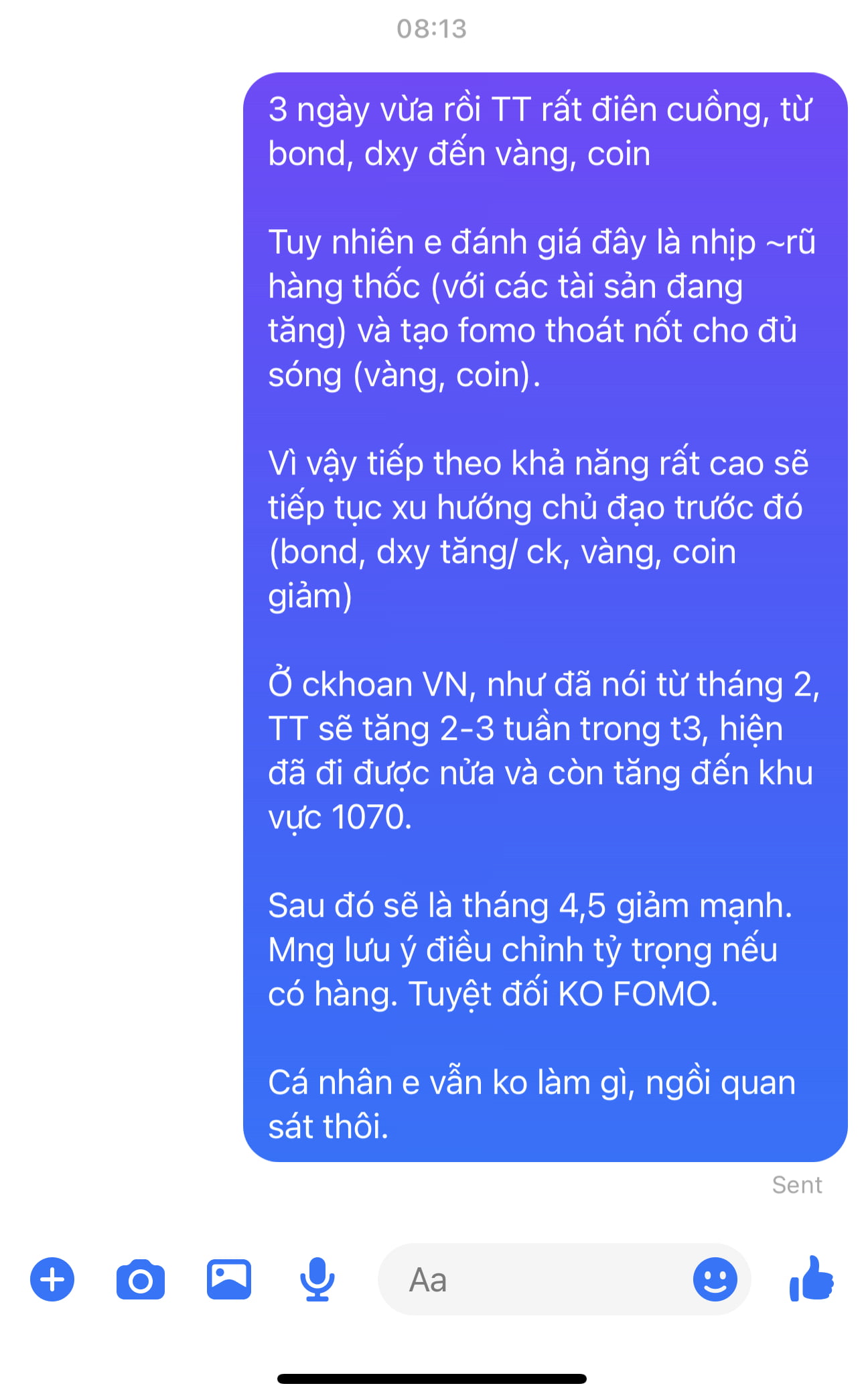 Những ngày qua không chỉ VN mà thế giới có các biến động mạnh ở bond, dxy, ck, vàng và đặc biệt là bitcoin.