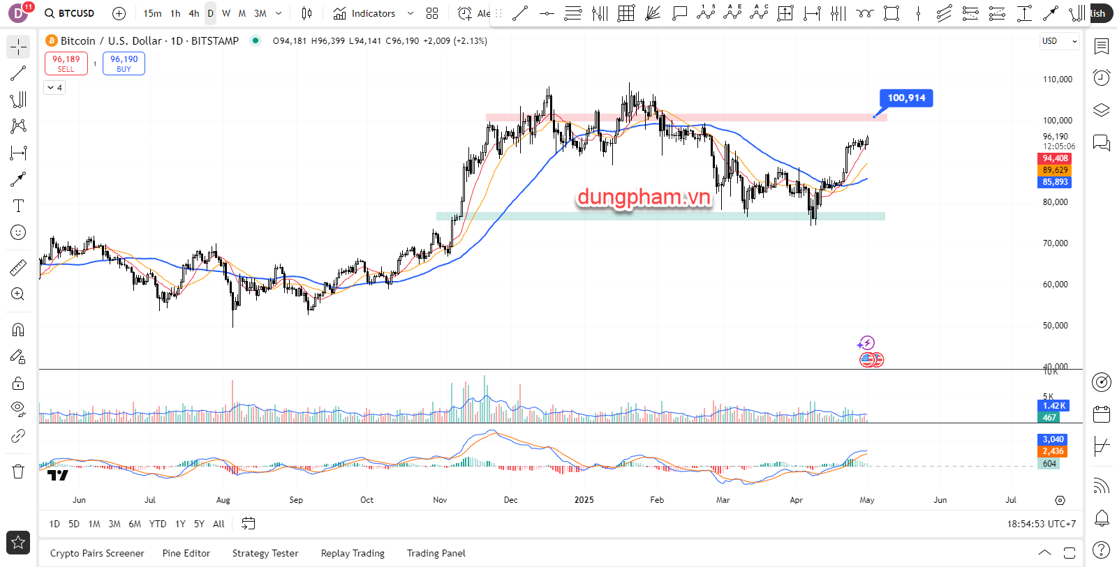 Việc BTC hồi lên khu vực $95k cũng không có gì bất ngờ và đã như dự tính đầu tháng 4.
