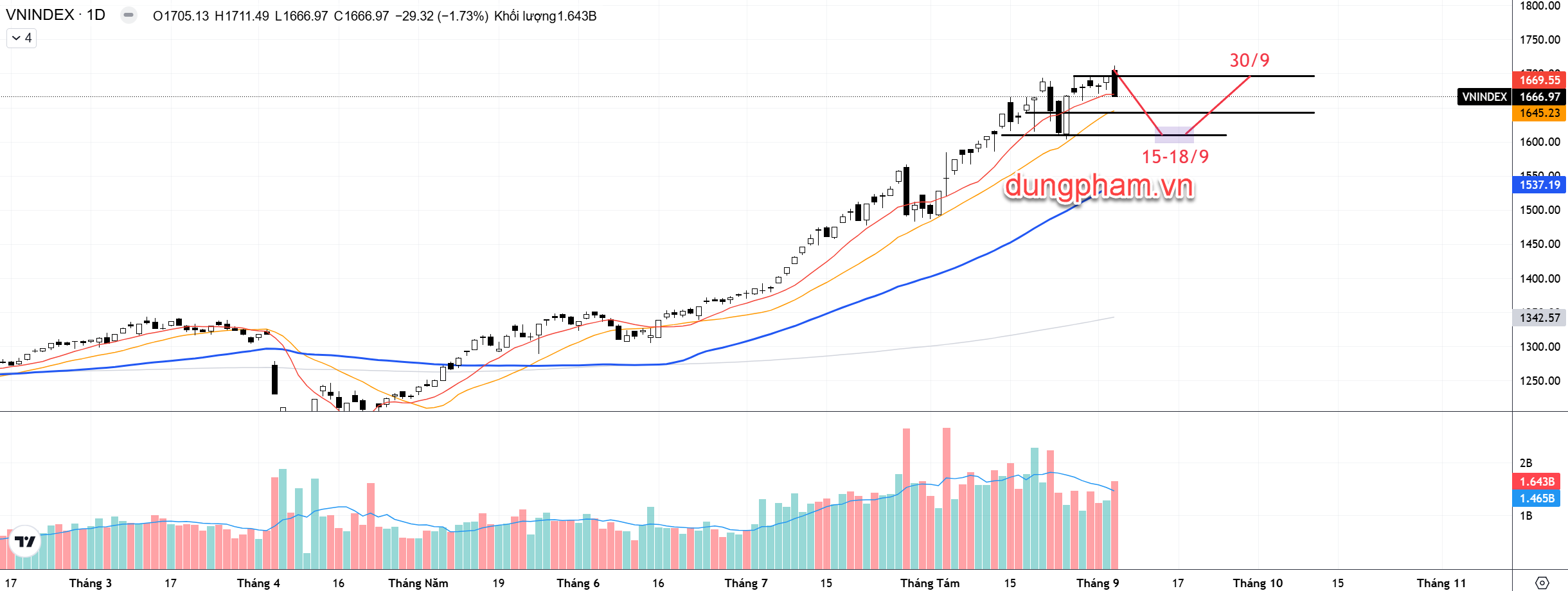 Trong tháng 9 (hiện tại ngày 7/9/2025), VNI có những kịch bản chính như sau: